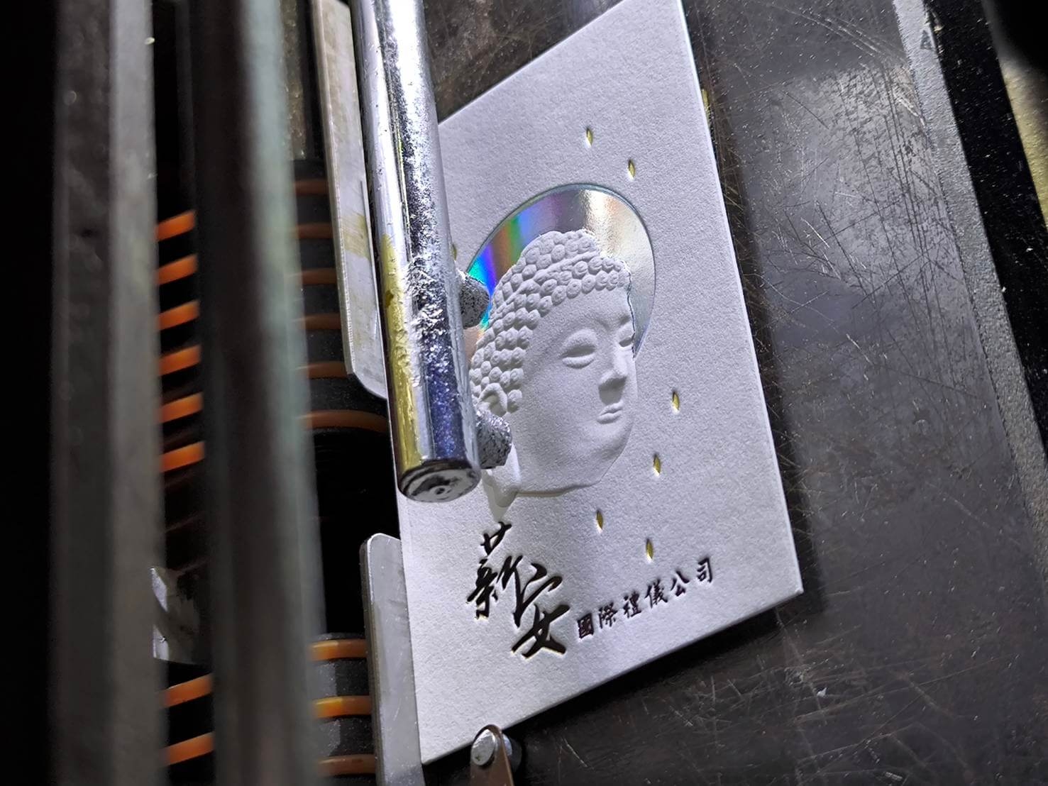 不是噴墨,而是透過金屬版或聚合版,搭配壓力,在紙張上形成凹凸效果。