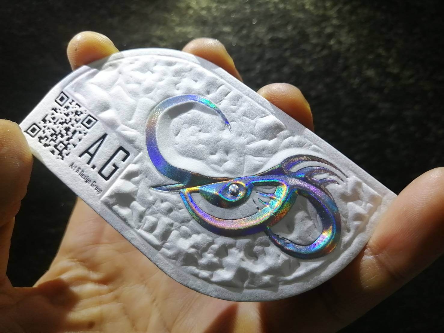 這類名片拿在手上時會有明顯的凹凸觸感,也非常適合視覺設計、品牌顧問、創業者作為第一印象工具。