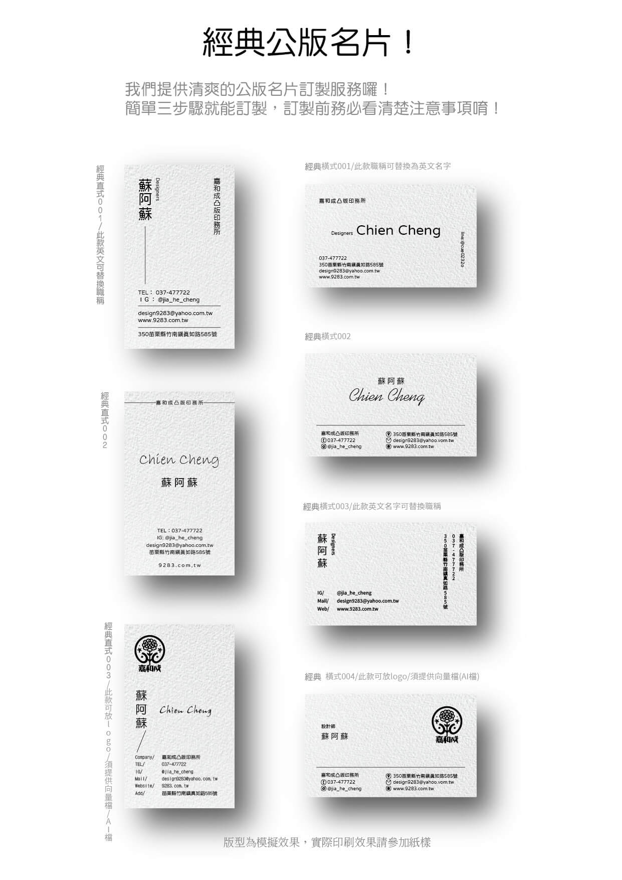 ▋四個凸版印刷名片預算方案(嘉和成實際案例區間)