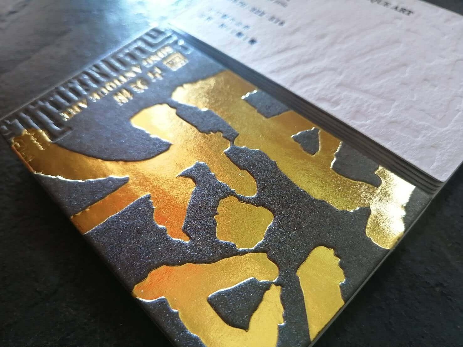 燙金名片是利用熱壓技術,在名片表面燙印金箔或銀箔,展現高端奢華的質感。