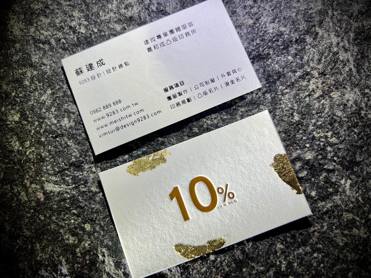 工藝細節: 由於凸版印刷本身就是壓力工藝,燙金與印刷的對位精準度是高品質名片的指標。