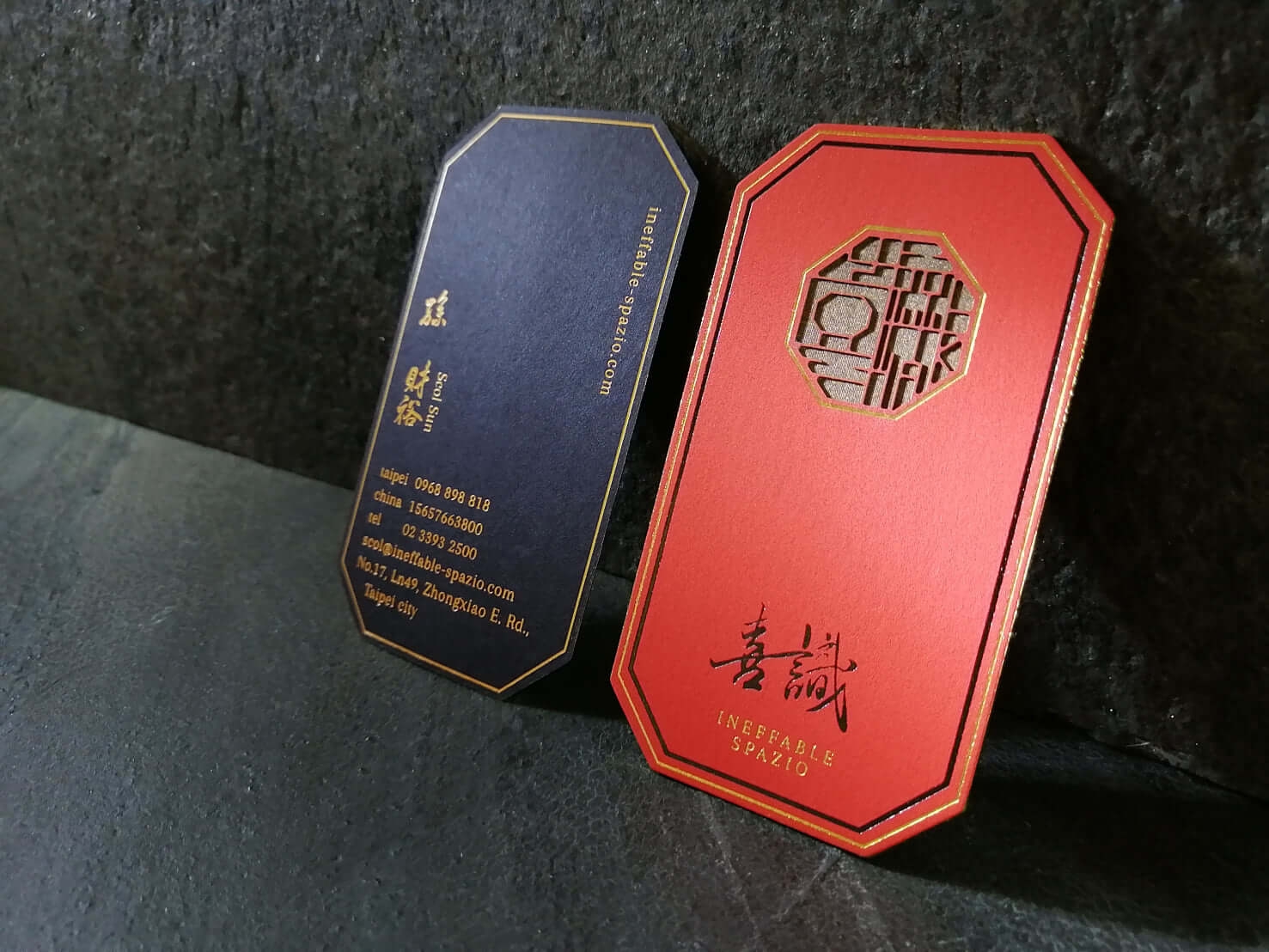 9. 材質加工:嚴選棉紙並搭配無色壓印、燙金或對裱工序,將名片從平面印刷昇華為多層次的微縮藝術品。